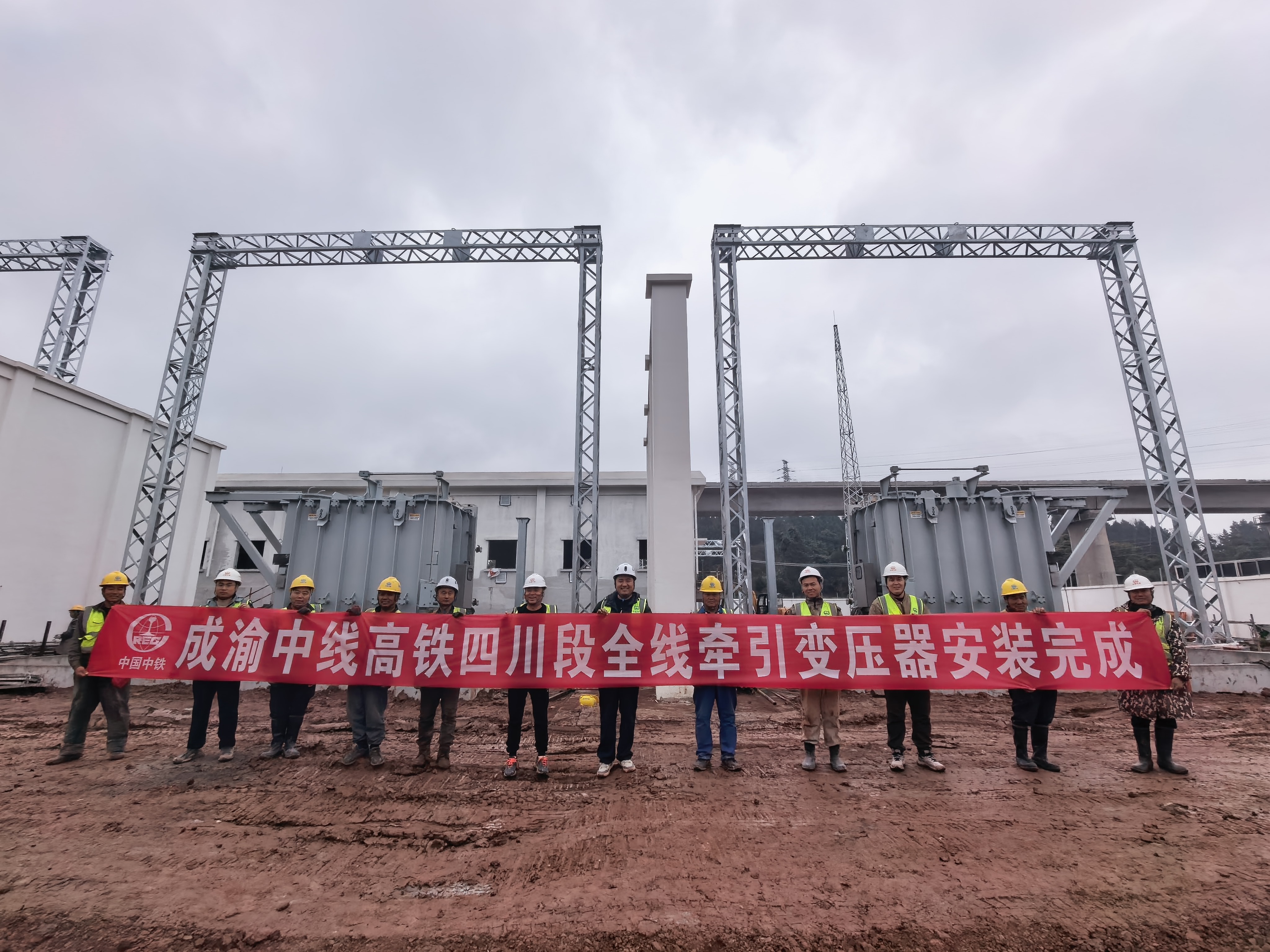 成渝中线高铁四川段牵引变压器安装完成